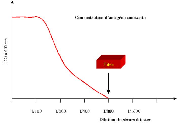 d’anticorps présente dans le sérum est déterminée par titrage de celui-ci en