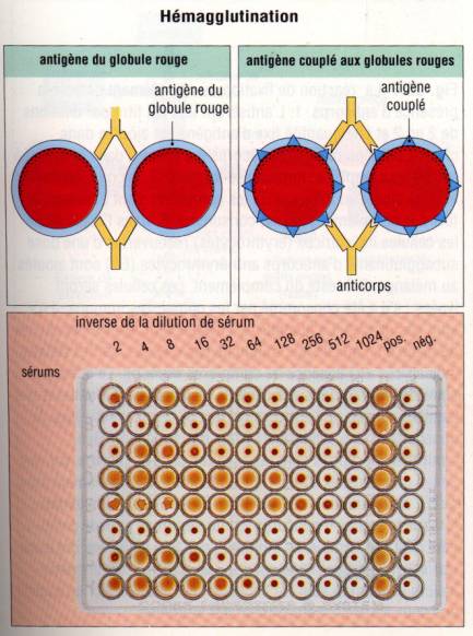 test d’hémagglutination passive. Le couplage sur des hématies peut être obtenu