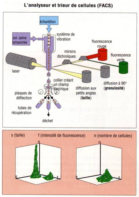 cellule sont captées par les anticorps au contact de la cellule. Après lavage,