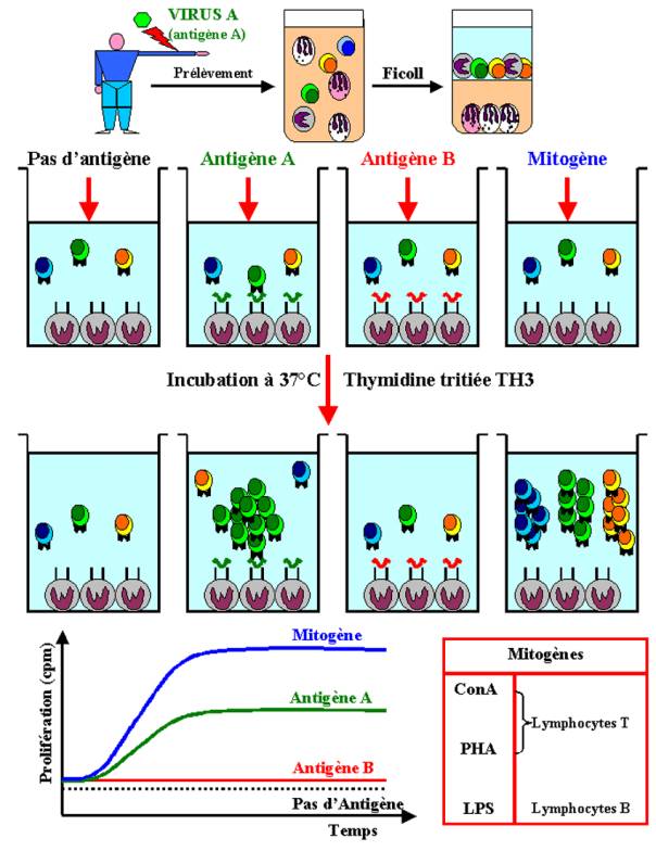 lymphocyte s’active et prolifère. Cette prolifération peut être mesurée par