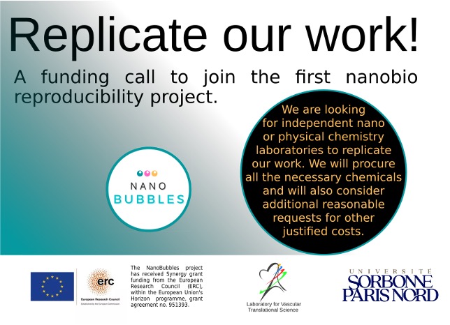 The ERC Synergy project NanoBubbles asks the question of how, when and why does science fail to correct itself. Raphaël Lévy (team 4) is one of the principal investigators of this project and he leads a replication initiative in bionanoscience, with post-doctoral researchers Mustafa Gharib and Maha Said. They have recently published an article launching their replication initiative, as well as the results of their first replication, a Correspondence linked to the first replicated article as well as a number of other research outputs, including a call for others to replicate their own work. The project was also featured in Nature News, in TheMetaNews and in Le Monde.